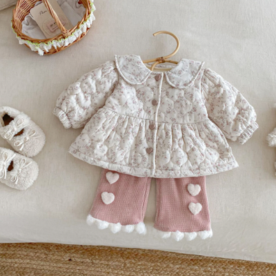 - [빠른수입] 기모) 핑크바지 플라워자켓 세트