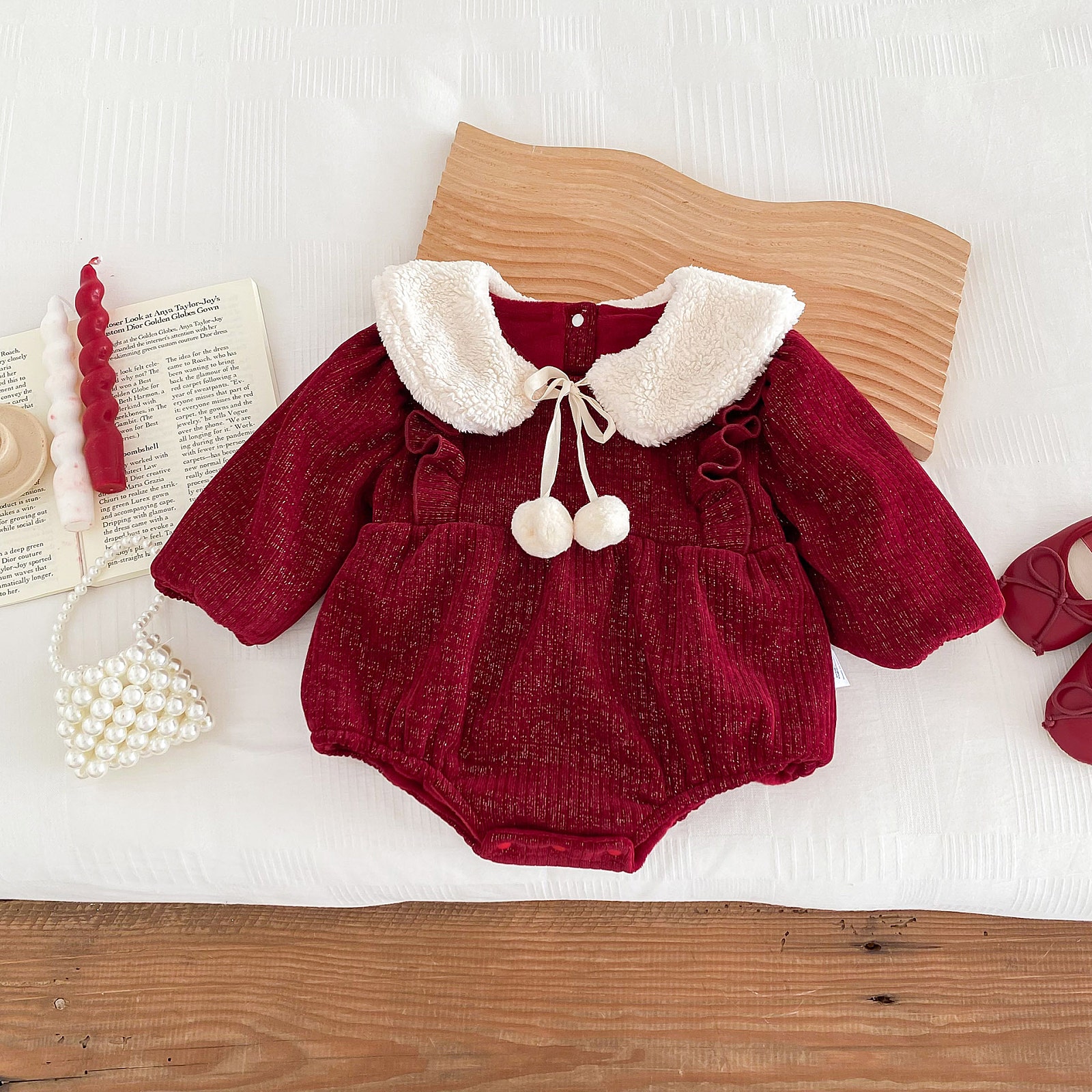 - [빠른수입] 레이스 블랙리본 기모상하복