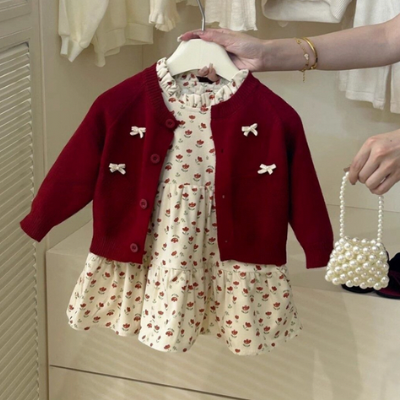 [빠른수입] 레드가디건+튤립원피스셋