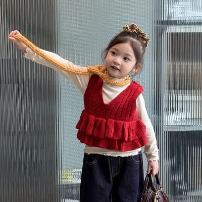 비다이어리.레드니트조끼뷔스티에